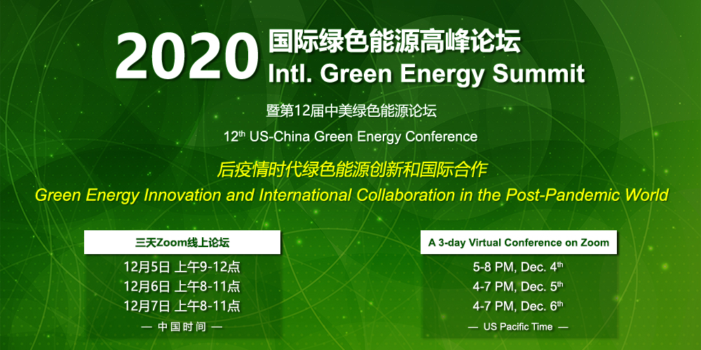 The US-China Green Energy Council is excited to announce the 2020 International Green Energy Summit will be held virtually on Zoom on Dec. 4th – 6th, 2020 (US time). It is free and open to all, but registration is required. Please see the complete Summit Program.